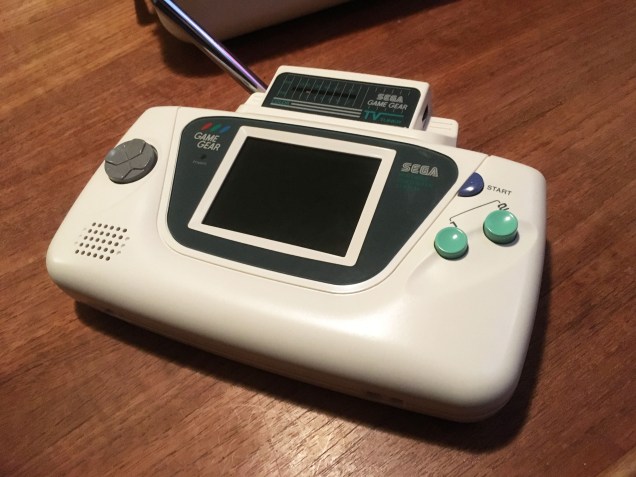 So I’ll sub in a working recapped Game Gear. I touched the TV tuner’s aerial to the Telecon pack’s aerial for maximum reception.